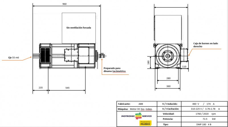 MOTOR DC 72.5 kW ABB DMP180 4B